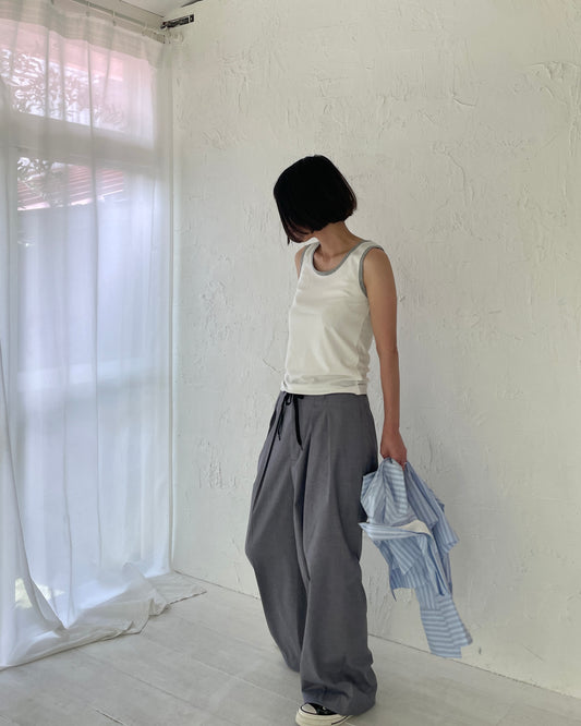 ウエストはゴム仕様でドロストで調節が可能。