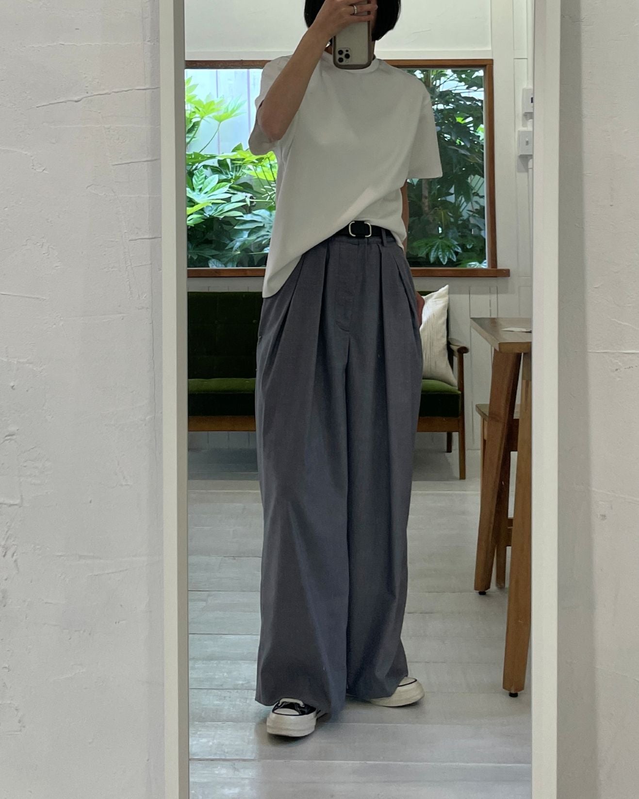 シンプルな装いに差がつく、こだわりがつまった一枚です。
